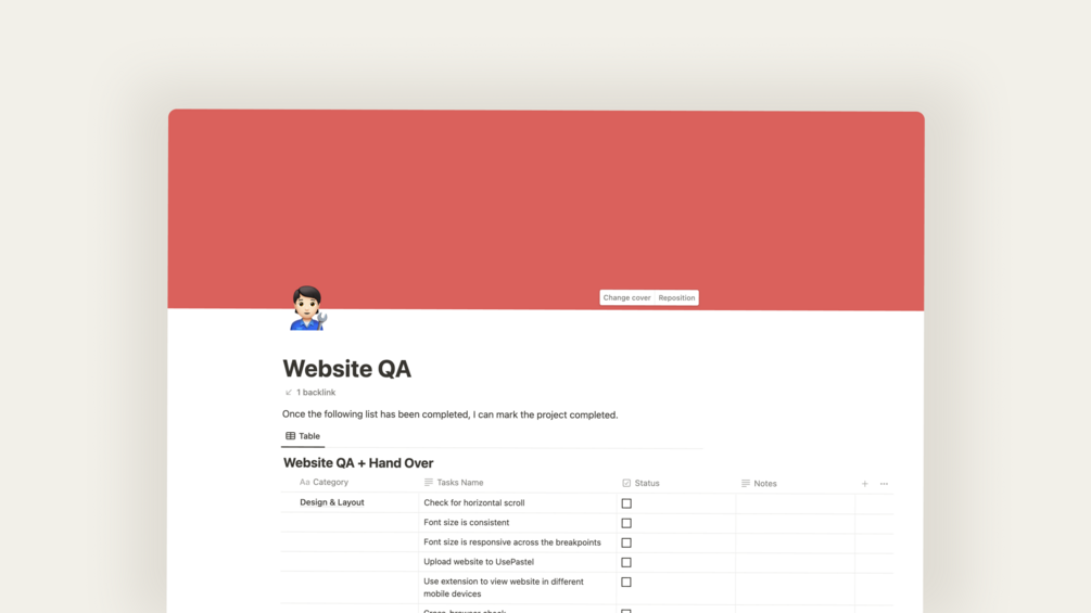 Inside this Notion guide you will get 50 check-points for a full QA of the website, for example: